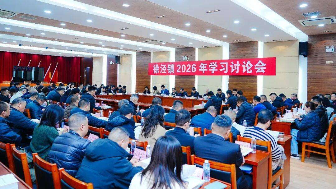 1月18日,徐泾镇召开2026年学习讨论会,学习贯彻落实区委学习讨论会的精神,起好步奠定坚实基础。镇党委书记朱磊明,镇党委副书记、镇长陈瑜,镇人大主席周伟等镇领导班子全体成员出席会议,机关各科室主要负责人,各村(居)、筹备办、企事业单位、其他基层单位党政主要负责人,各综合网格工作站站长,各派出机构主要负责人参加。